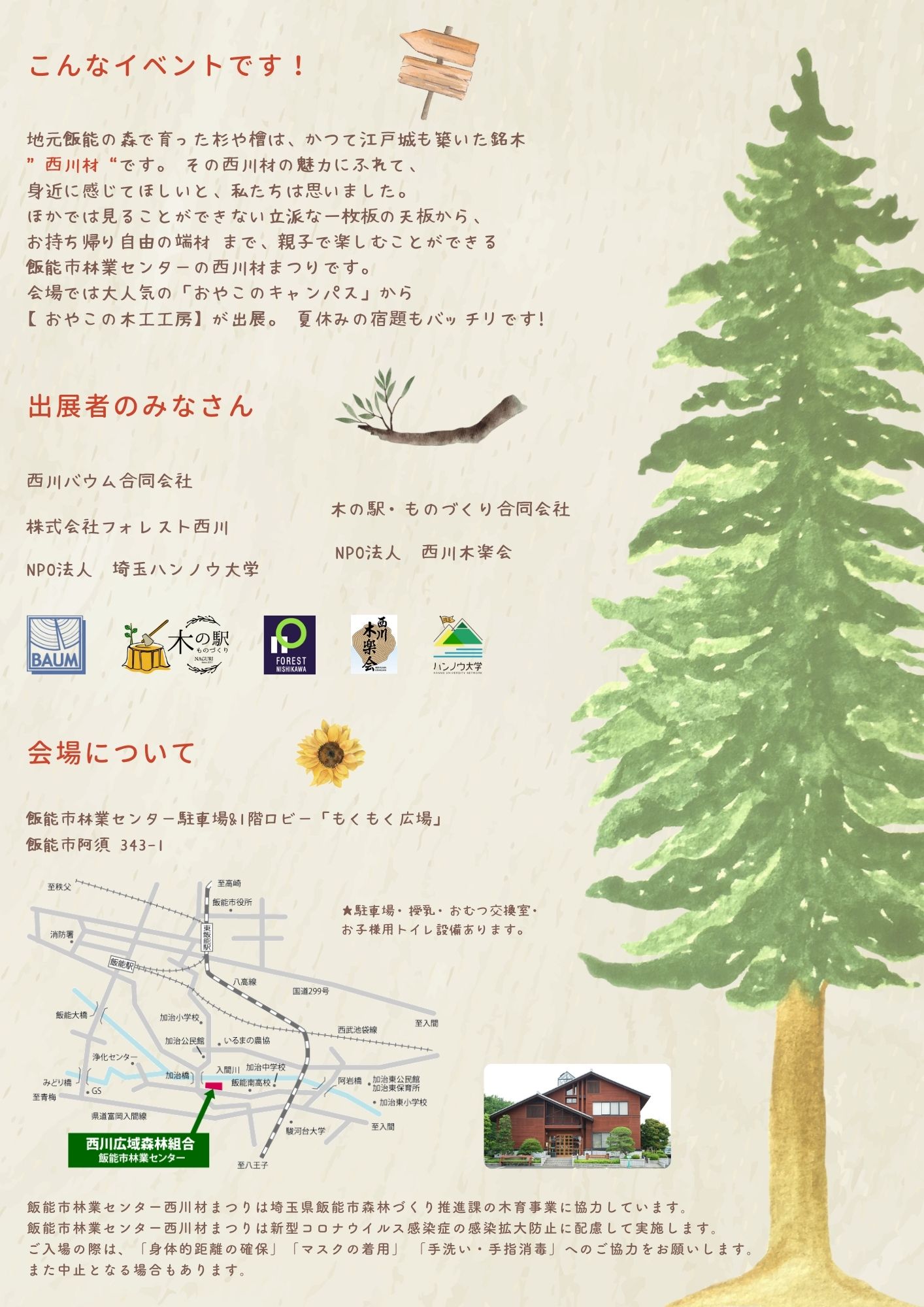 8月21日(日)に飯能市林業センターで開催される西川材まつりに出展します。
